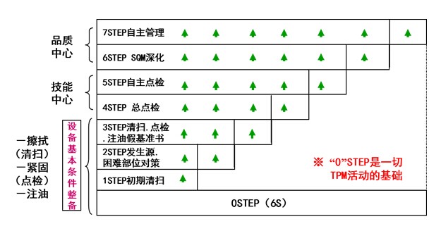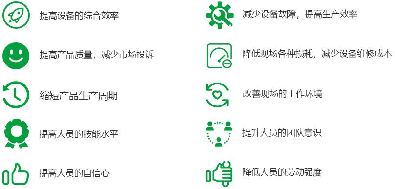 全員參加:指設(shè)備的計(jì)劃、使用、維修等所有部門(mén)都要參加,尤其注重的是操作 者的自主小組活動(dòng)