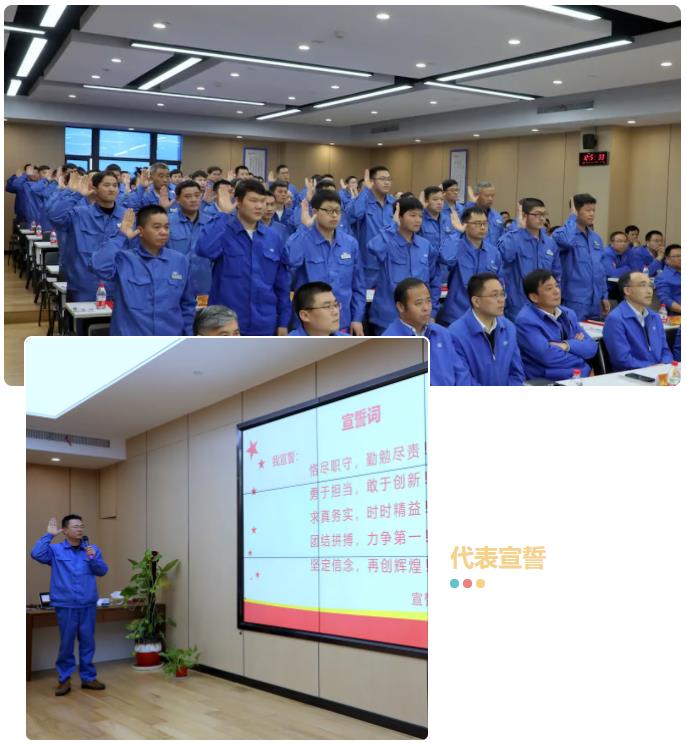 儀式上,雙良節(jié)能溴冷機(jī)事業(yè)部蒸吸筒體焊接組組長馬立,帶領(lǐng)新聘班組長宣誓。誓言錚錚,高亢嘹亮,現(xiàn)場對全體新聘班組長肩負(fù)使命,為雙良發(fā)展努力奮斗奉獻(xiàn)的表達(dá)報以掌聲和敬意。