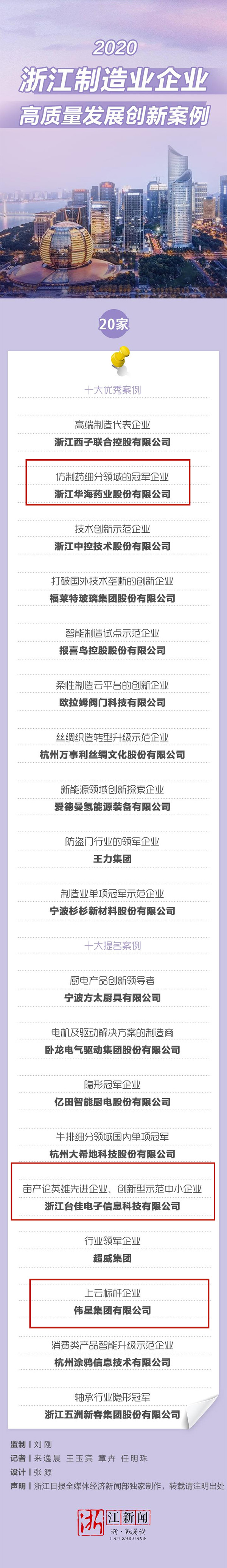 20個(gè)浙江制造高質(zhì)量發(fā)展創(chuàng)新案例,臨海占3席!
