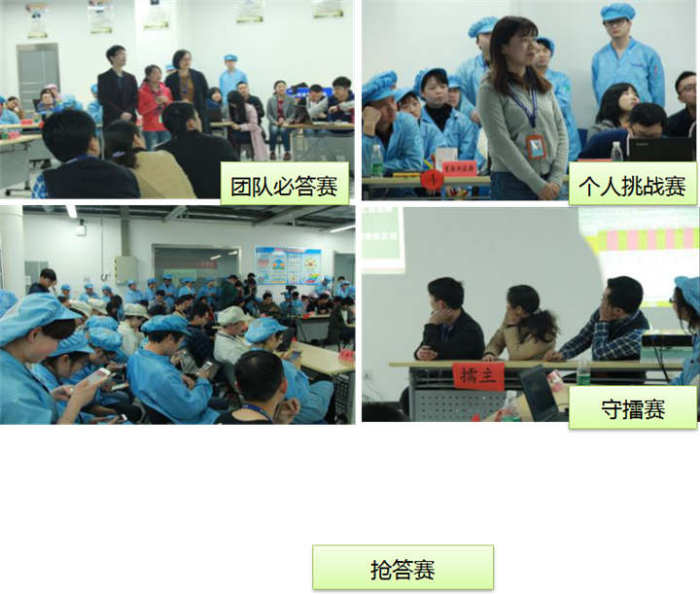 緊接著進(jìn)入第一個(gè)主題活動(dòng)——精益六西格瑪知識(shí)大比拼。“知識(shí)大比拼”活動(dòng)分為團(tuán)隊(duì)必答賽、個(gè)人挑戰(zhàn)賽、搶答賽和守擂賽四輪,拉拉隊(duì)互動(dòng)有獎(jiǎng)競(jìng)答穿插于每輪比賽之間。團(tuán)隊(duì)必答賽由參賽團(tuán)隊(duì)一起答題,第一輪下來(lái)各隊(duì)勢(shì)均力敵,不分高低。個(gè)人挑戰(zhàn)賽挑戰(zhàn)一旦失敗便失去答題權(quán),第二輪結(jié)束后已有部分隊(duì)伍暫時(shí)領(lǐng)先。搶答賽是通過(guò)拼手氣搶紅包獲得答題權(quán),本輪比賽答錯(cuò)是會(huì)被扣分的,所以搶到紅包的隊(duì)員既驚喜又緊張,第三輪結(jié)束后各隊(duì)成績(jī)已見(jiàn)分曉。第四輪守擂賽將本場(chǎng)比賽推向高潮,由前三輪得分最高的團(tuán)隊(duì)擔(dān)任擂主,其他團(tuán)隊(duì)為挑戰(zhàn)者,挑戰(zhàn)成功得分,同時(shí)擂主扣除相應(yīng)分,挑戰(zhàn)失敗扣分,同時(shí)擂主得相應(yīng)分。第四輪結(jié)束后,前三輪的比賽成績(jī)來(lái)了個(gè)“乾坤大挪移”,逆襲的團(tuán)隊(duì)沸騰了,與冠軍失之交臂的團(tuán)隊(duì)捶胸頓足,懊惱不已。最終總成部的團(tuán)隊(duì)獲得本次主題活動(dòng)的冠軍。