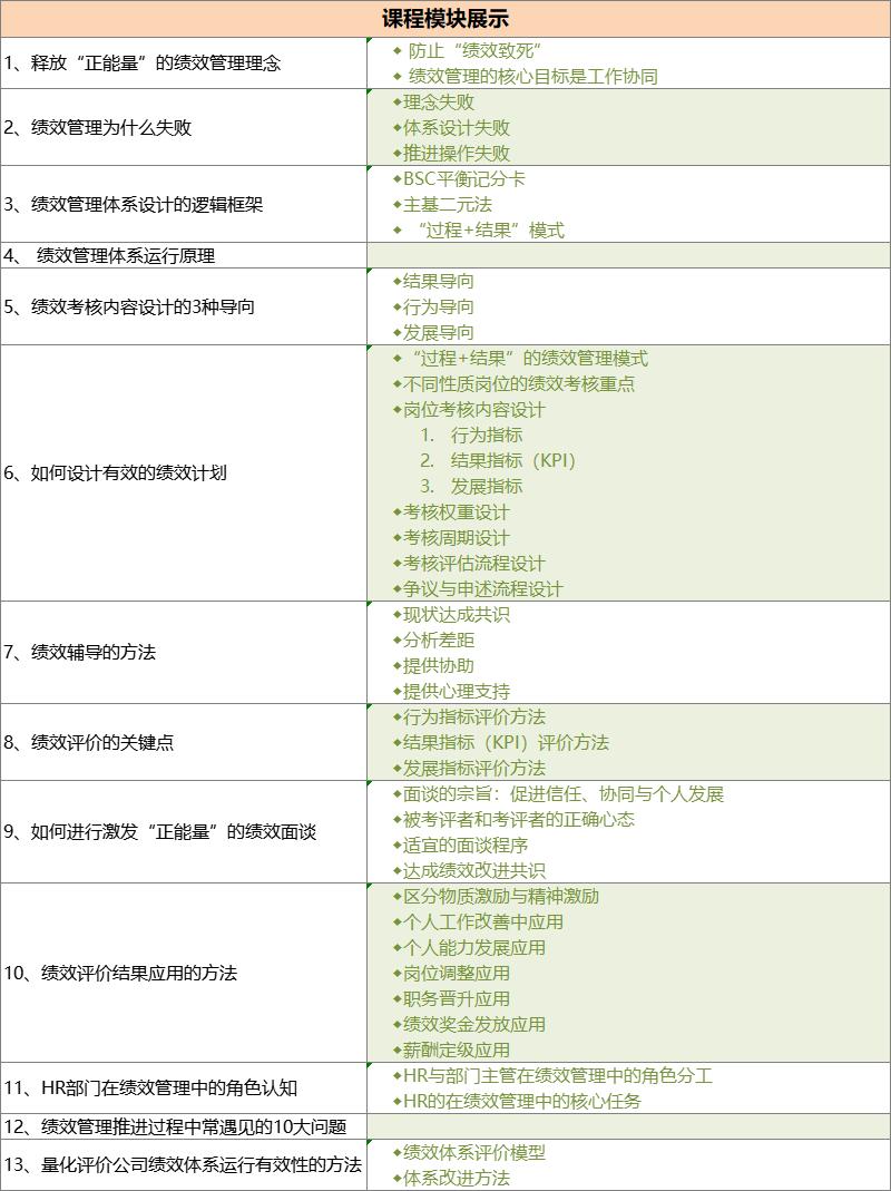 提供完整的績(jī)效體系設(shè)計(jì)、實(shí)施、改進(jìn)的系統(tǒng)方法,通過講授+演練,讓學(xué)員深刻理解績(jī)效管理的本質(zhì)和科學(xué)的績(jī)效體系建設(shè)的方法和步驟。